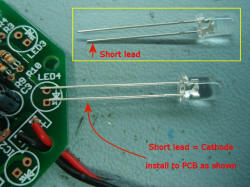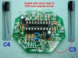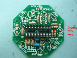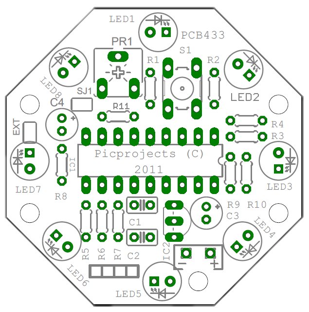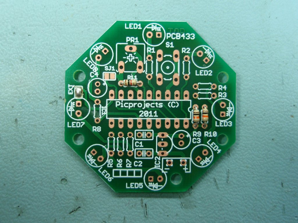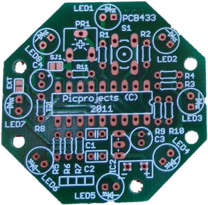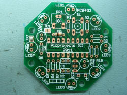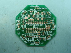 the PIC 16F628A microcontroller, IC1. The program that runs on this chip controls the LEDs
