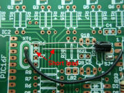 The wire should link the solder pad from XT1 to the solder pad