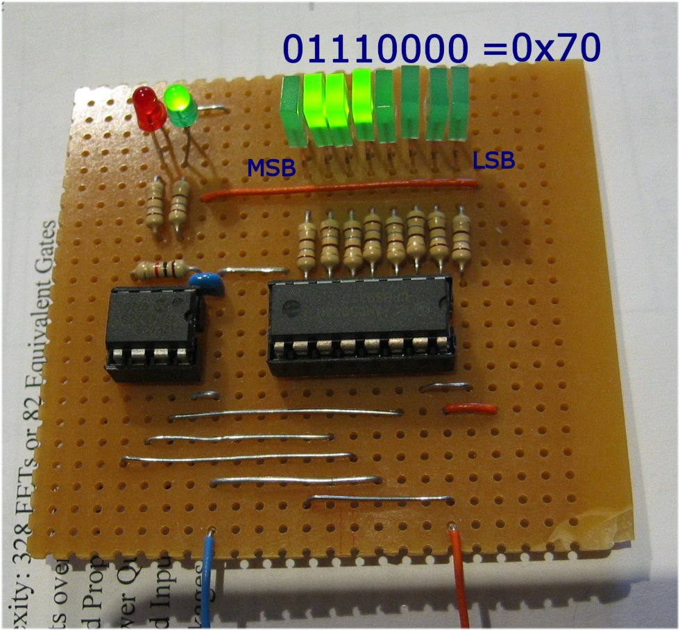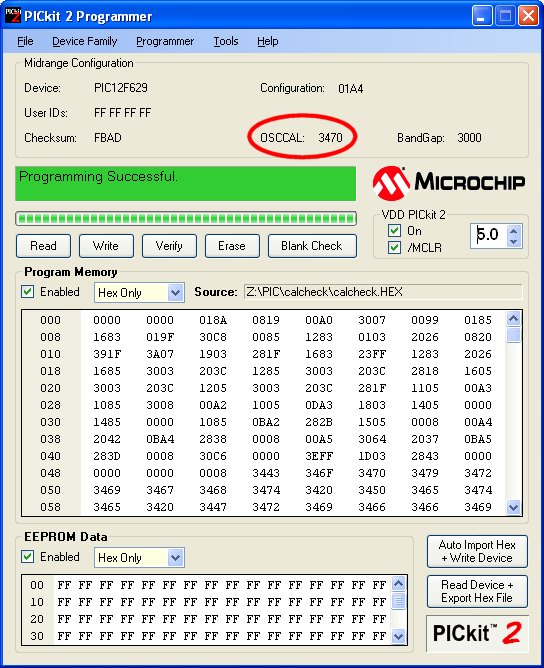 value is displayed in binary on the 8 LEDs. The calibration value is unique to each PIC so the