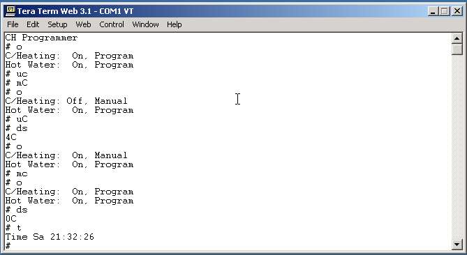 At power up the programmer sends a VT100 [ESC] c command followed by the text 'CH