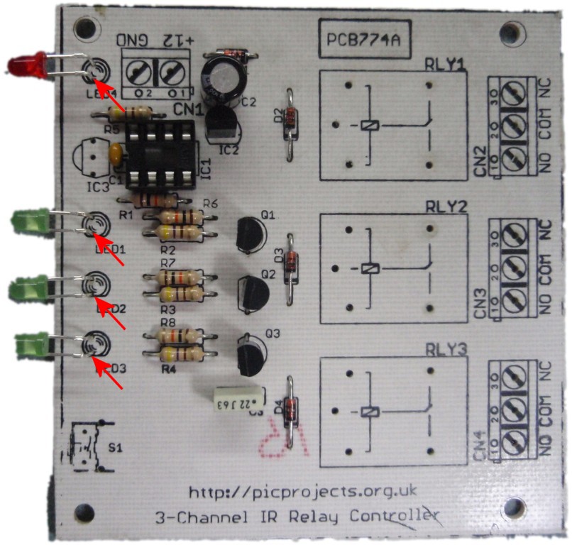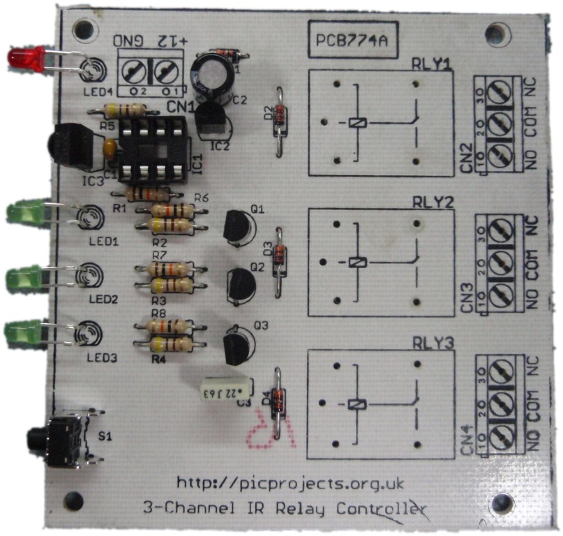 for the PIC microcontroller IC1 and the IR receiver IC3.