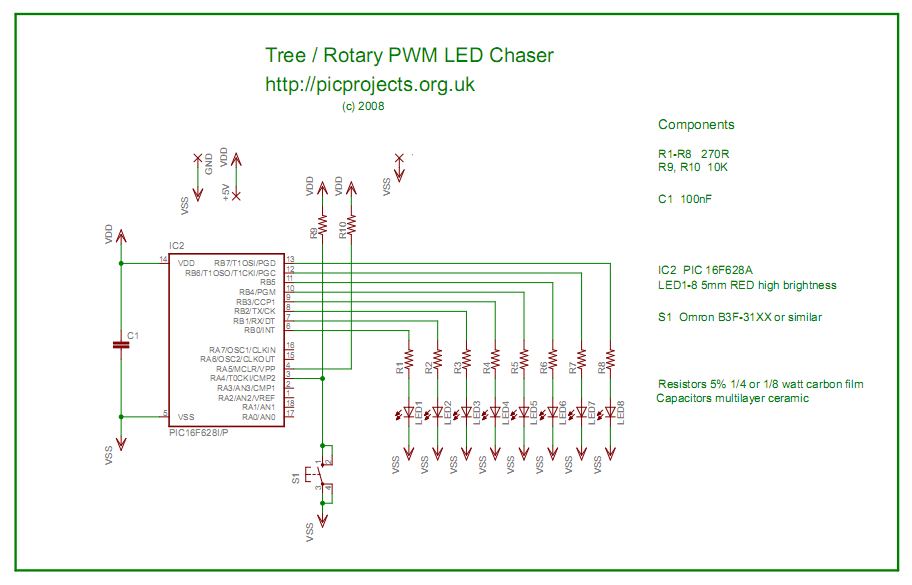 The UFO Round LED Chaser is now available as a kit - see project page here Schematic is common to both alternate designs |