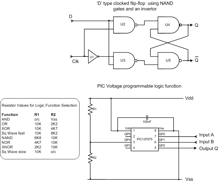 type flip flop (PIC Flop:-) I built out of five 12F675 Logic