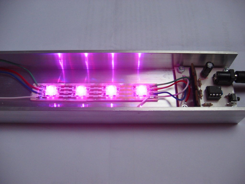 Blue high brightness LEDs that are pulse width modulated (PWM) to vary