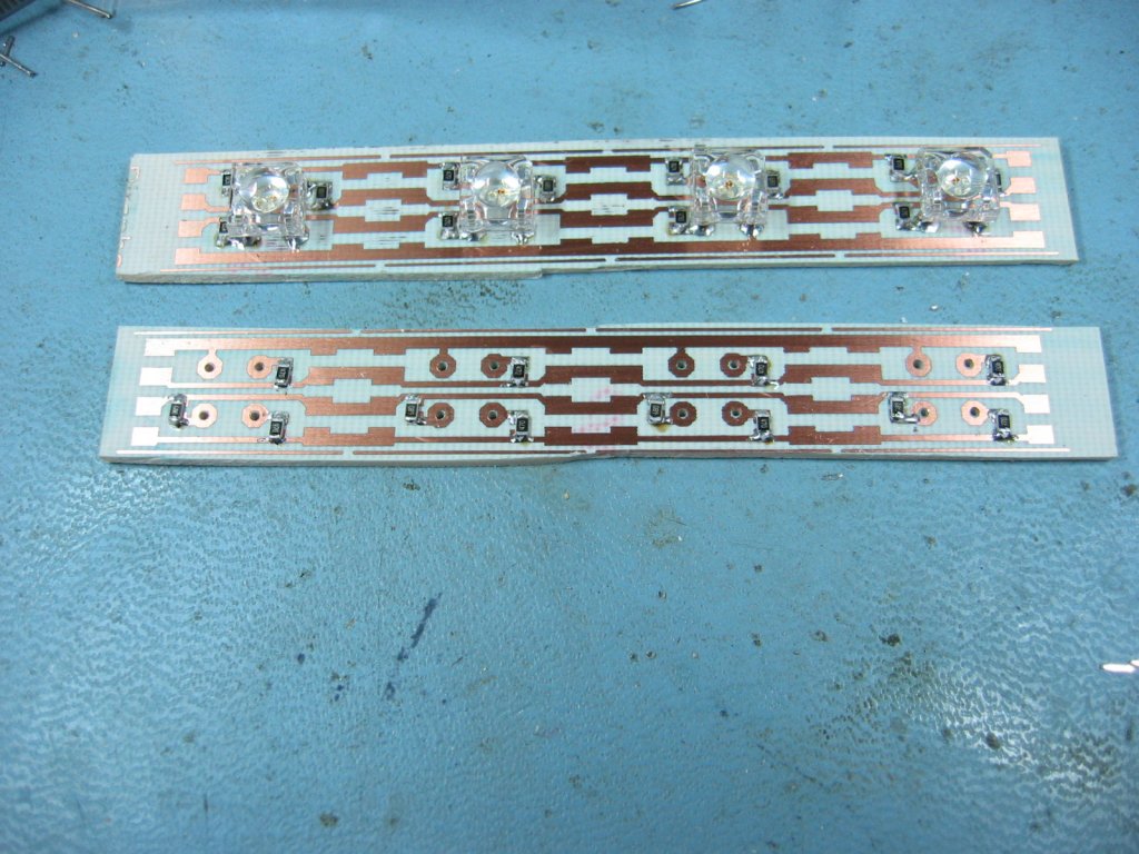 align the body of the LEDs, solder one lead of each LED. (Photo.9)