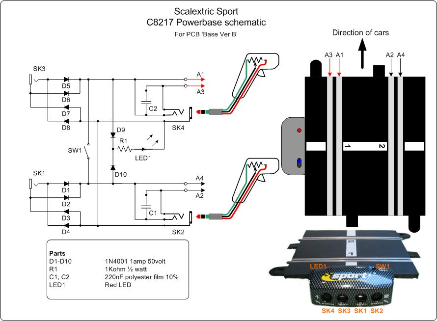 Scalextric power-base (part C8217), throttles and transformer pack.