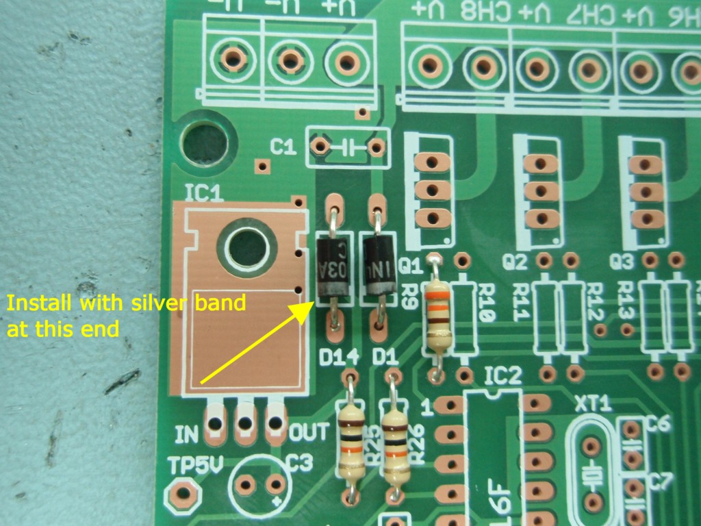 Next install the PIC16F628A and CNY74 opto-isolator into their
