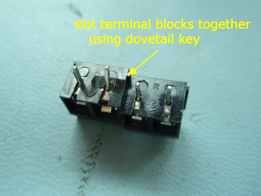 Fit the two 2-way terminal blocks together using the dovetail key.