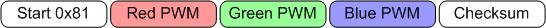 Green and Blue PWM values. 0 = 0% (LED off) through to 255