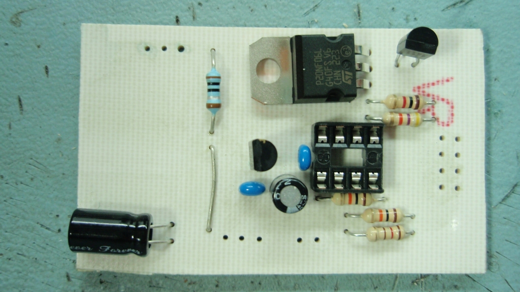 the IC1 socket. It should measure 4.9 to 5.1 volts, if it