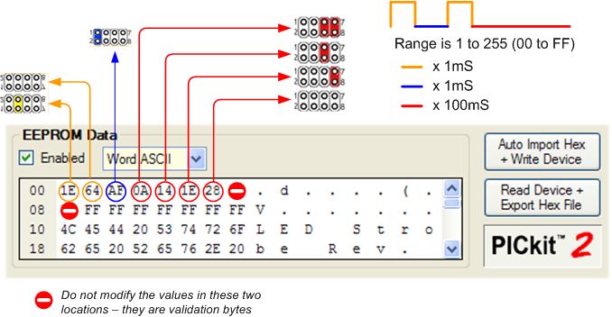 timings which are easily customised by editing values in the PIC's EEPROM at programming time. |
