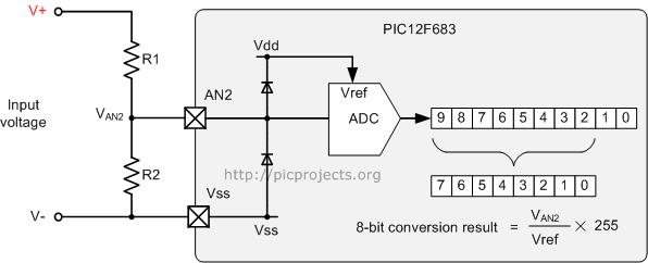 the PICs ADC input will be 12 x 0.248 = 2.977 volts.