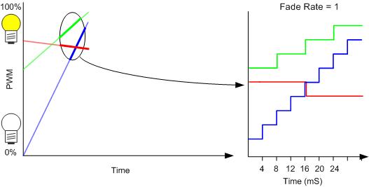 because at the minimum fade rate of 1, a full fade from 0 to 100%