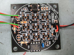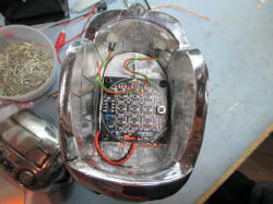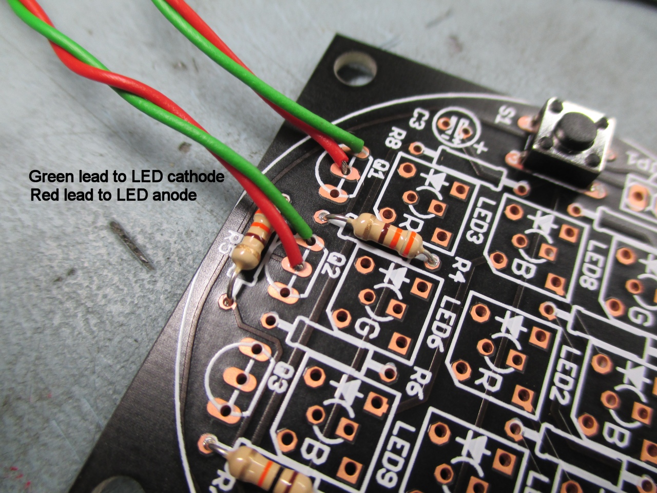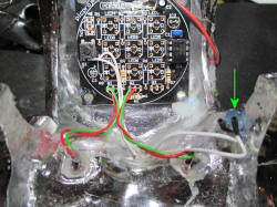 leads through the centre hole and solder to the
