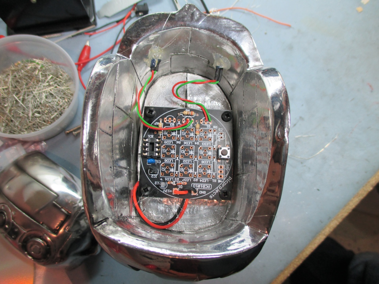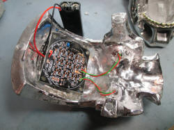 fix the PCB and LEDs into the top of the skull.