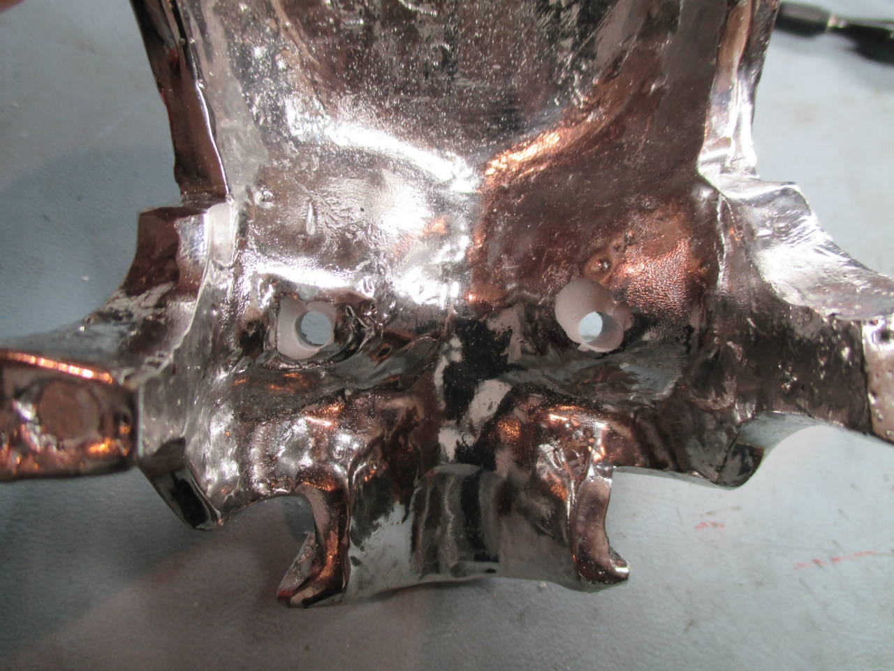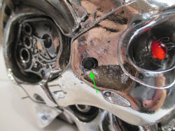holes drilled through the eyes of the skull and a two red LEDs