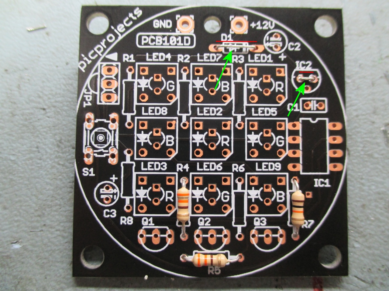 voltage regulator, driver transistors and multiple LEDs are not