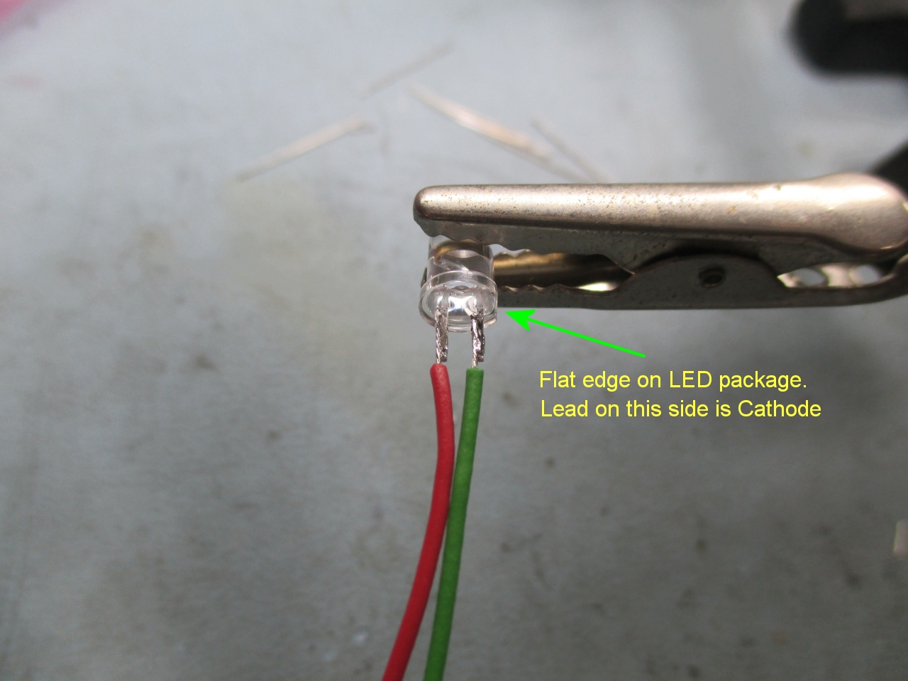 LED as shown. Note the flat on one side of the LED